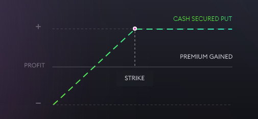 The cash-secured put is a strategy made of two parts- selling an out-of-the-money put while also having enough cash to purchase the underlying given it hits the option strike price. By selling the cash-secured put, you collect the premium from the option buyer while also maintaining the prospect of acquiring the underlying asset at a lower price than the market price in the future.